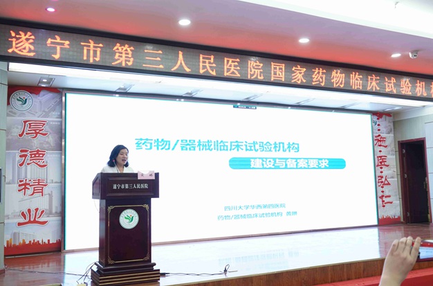 四川大学华西第四医院药剂科副主任黄琳就药物/器械临床试验建设与备案要求,进行了现场培训,并与参会人员进行答疑互动。