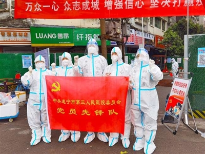 在这场疫情防控战中,市第三人民医院所有医护人员都服从安排、坚守岗位、无私奉献,坚守在飘扬的党旗下,为群众筑牢防疫墙。