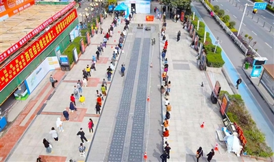 区域核酸检测工作开展后,市第三人民医院临危受命,第一时间组织规划了船山区核酸点位分布及流程管理、人员调度,并带头承担了船山区封控区、管控区、红黄码核酸采集点及隔离酒店等共21个核酸采集点的核酸采集、标本收集及检测、院感防治指导及督查、医疗救治、应急物资采购等工作。截至4月11日,市第三人民医院累计服务21个核酸检测点位,完成核酸检测208486人次,检测标本21921管,累计派出8168人次参与核酸采集等疫情防控工作。