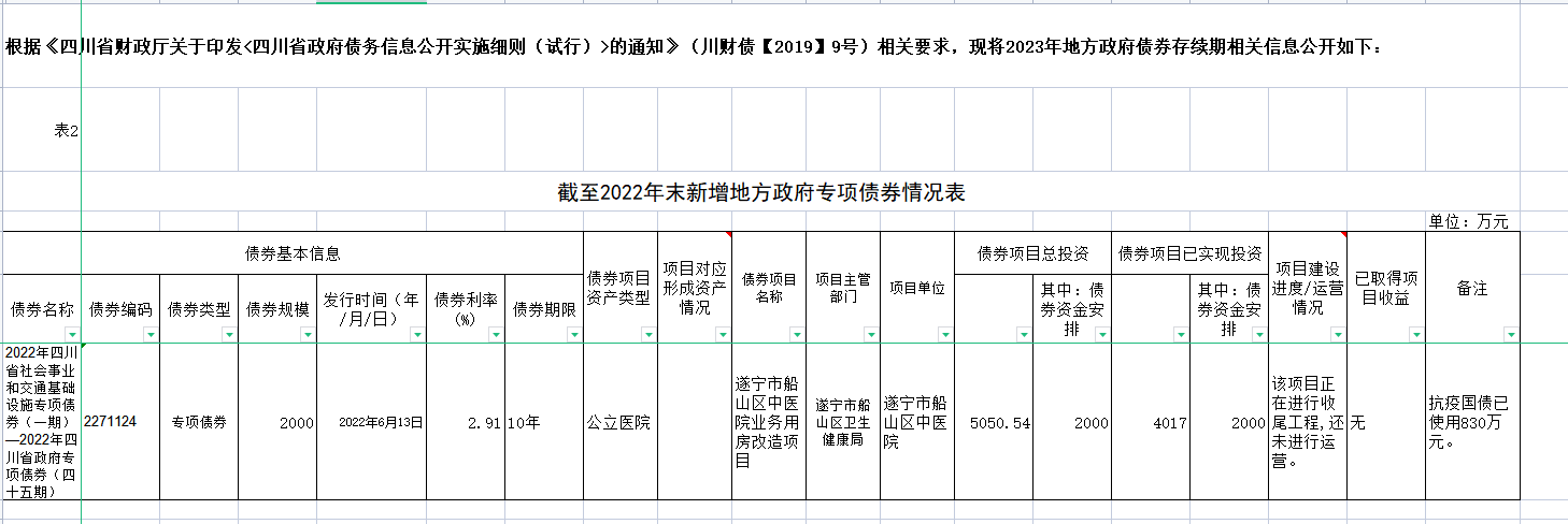 船山区新增地方政府债券存续期信息公开参考表样