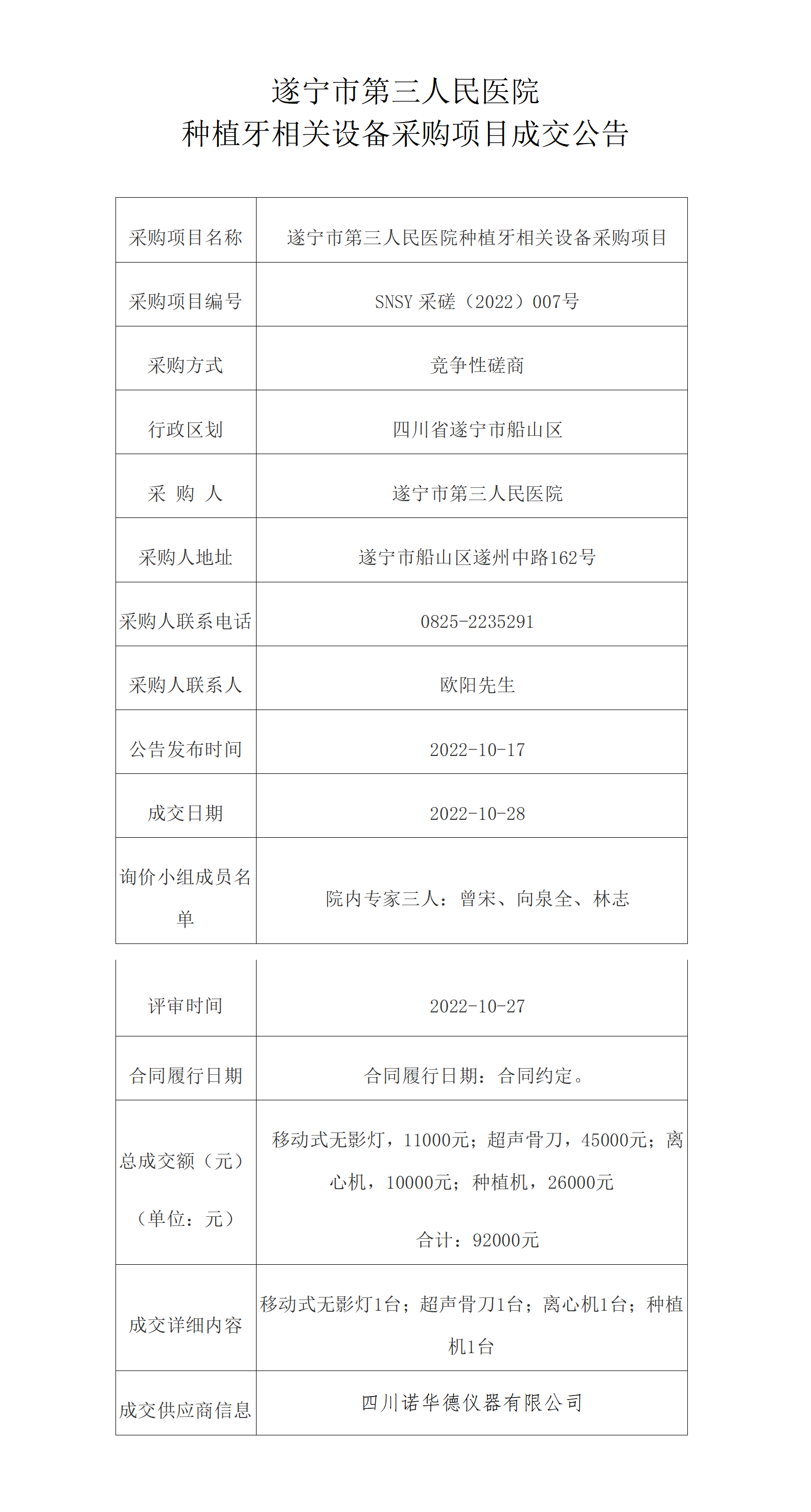 遂宁市第三人民医院 种植牙相关设备采购项目成交公告