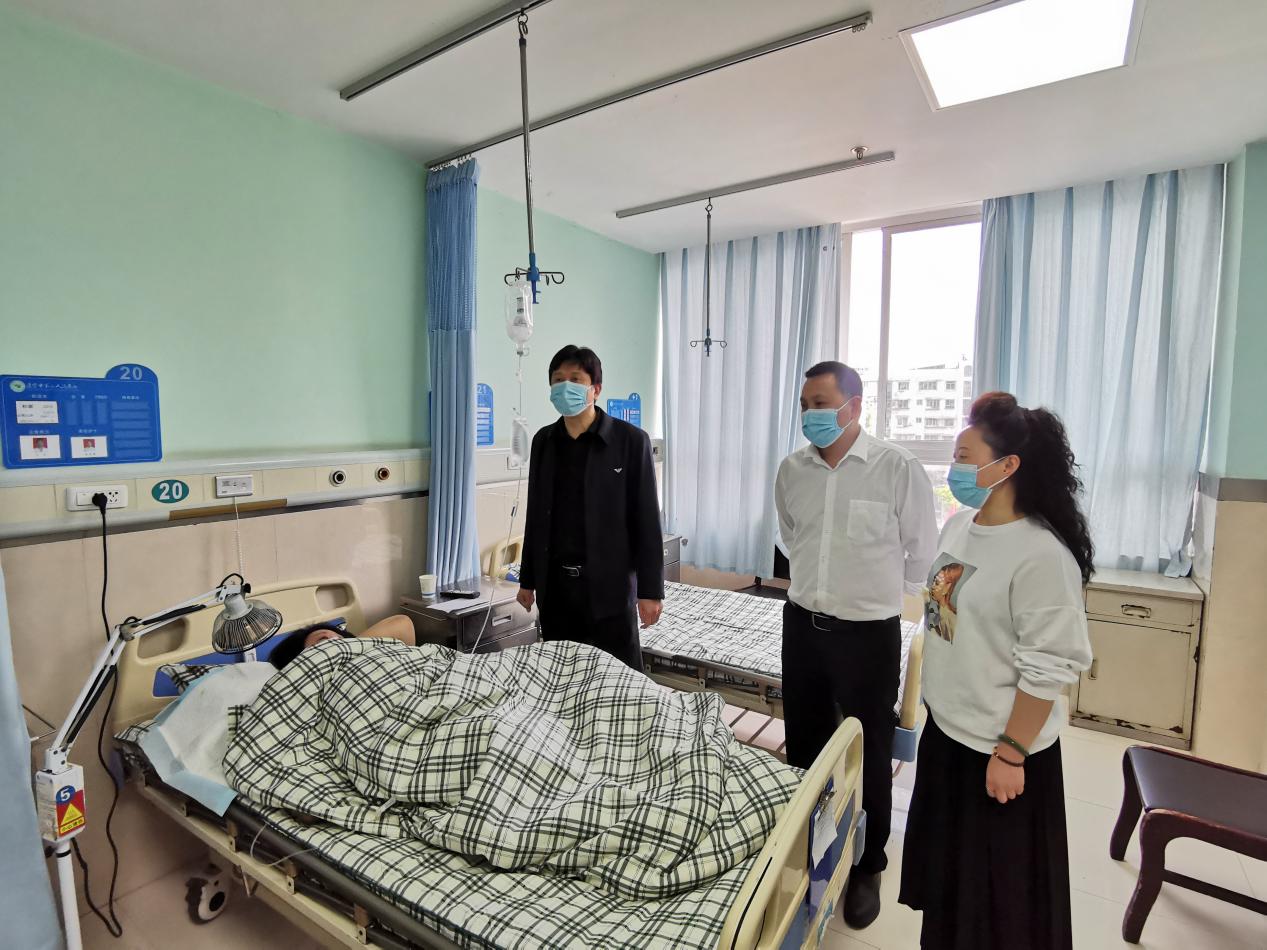 4月13日,我院党委书记何正光、院长康东、工会主席邓鸿月一同慰问受伤党员,何正光书记代表医院向3名同志表示关心关怀,感谢他们在疫情防控工作中的辛勤付出。