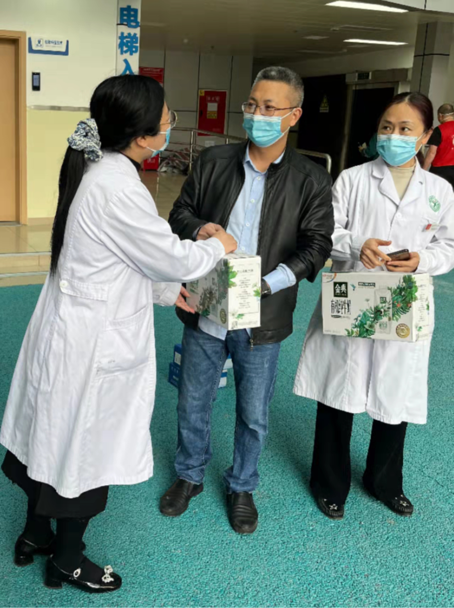 4月8日医技党支部书记黄卫携支委同志为奋斗在一线的检验人员送去诚挚慰问和关心,对他们在抗疫工作中的辛勤付出致以衷心的感谢和致敬,并送上牛奶、面包、饼干等慰问品。