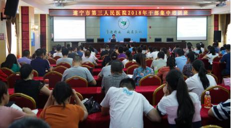 为全面加强干部队伍素质建设,提升干部管理能力,我院于7月28日至29日举办了2018年度干部集中培训班。本次培训班为期两天,以医院高质量发展、医学人文关怀医院品牌运营为主题,特邀了中华中医药学会文化分会副会长、成都中医药大学硕士生导师、四川省中医药管理局原副局长、副巡视员罗建,宣汉县人民医院以党委副书记、院长苏飞,党委书记、副院长冉启军为首的专家团队来院授课。参加培训班的有我院小组长及以上干部、业务骨干,同时邀请了各分院干部以及来自市内的各兄弟医院、船山区各乡镇卫生院的同仁,共计210余人。出席开班仪式有船山区卫计局党组成员、副局长徐栋良。培训由我院院长杨永春主持。