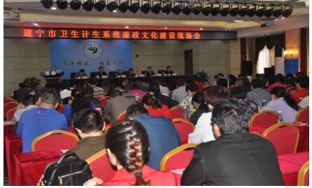 10月24日下午,全市卫计系统廉政文化建设现场会在我院召开。市纪委副书记李东,船山区委常委、区纪委书记蒋中治出席此次会议,市、区卫计系统各单位领导、纪检监察干部及我院中层以上干部,共计170余人参加此次会议。会议由市卫计委党组成员、纪委书记张宽主持。