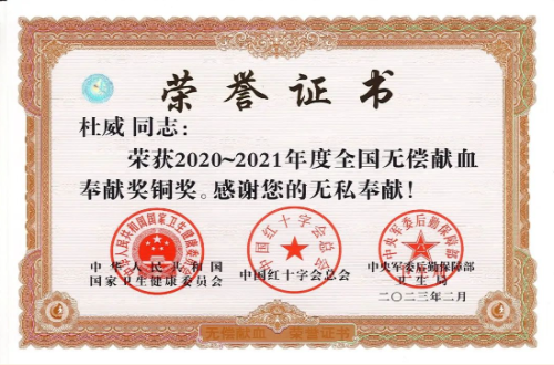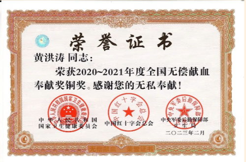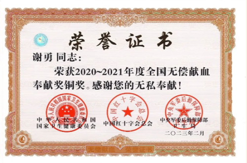 近日,国家卫生健康委、中国红十字会总会、中央军委后勤保障部卫生局根据《中华人民共和国献血法》和《全国无偿献血表彰奖励办法(2022年版)》,对2020-2021年度在无偿献血工作中突出的单位和个人进行表彰。市三医院5名职工获奖。