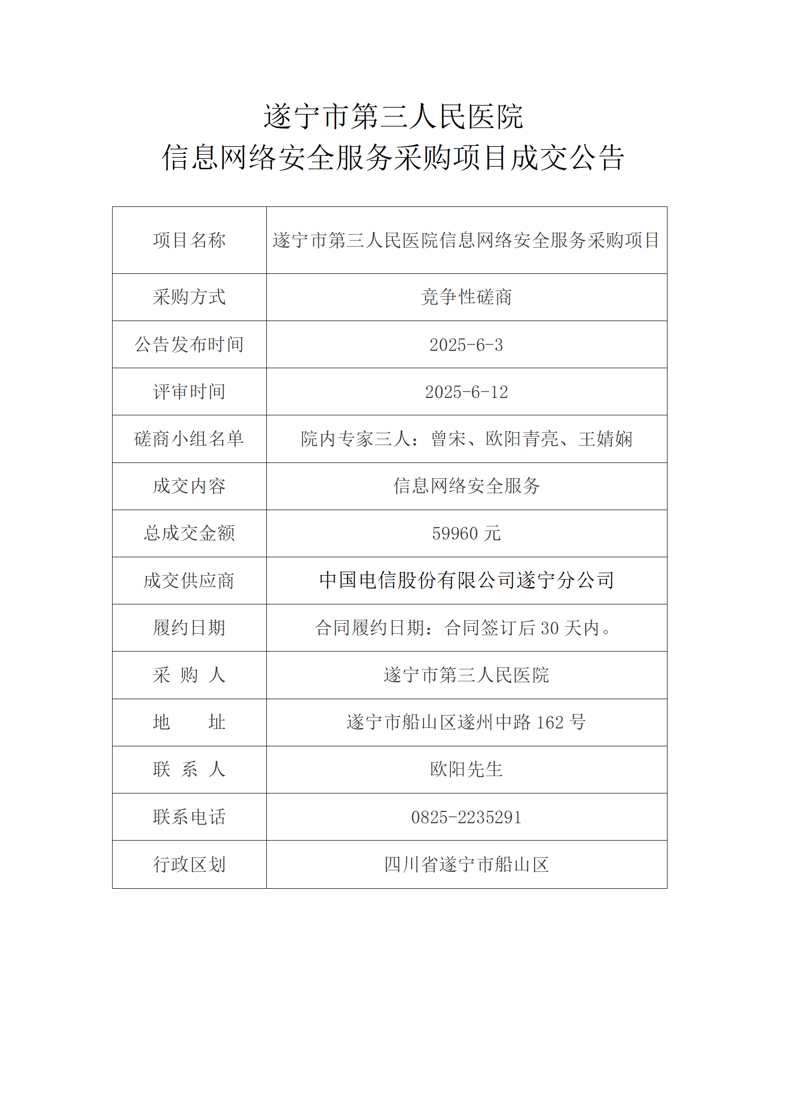 遂宁市第三人民医院 信息网络安全服务采购项目成交公告