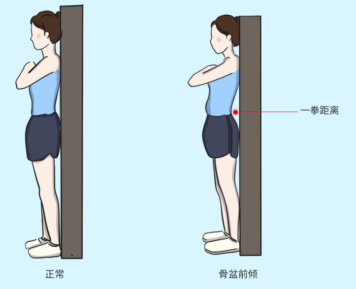 靠墙站立,臀部和后背尽量贴近墙面,检查腰部和墙壁间的缝隙。