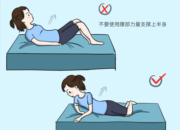 Step3:轻轻抬起头部,一点点抬起上身。让手指感觉到腹肌的挤压。