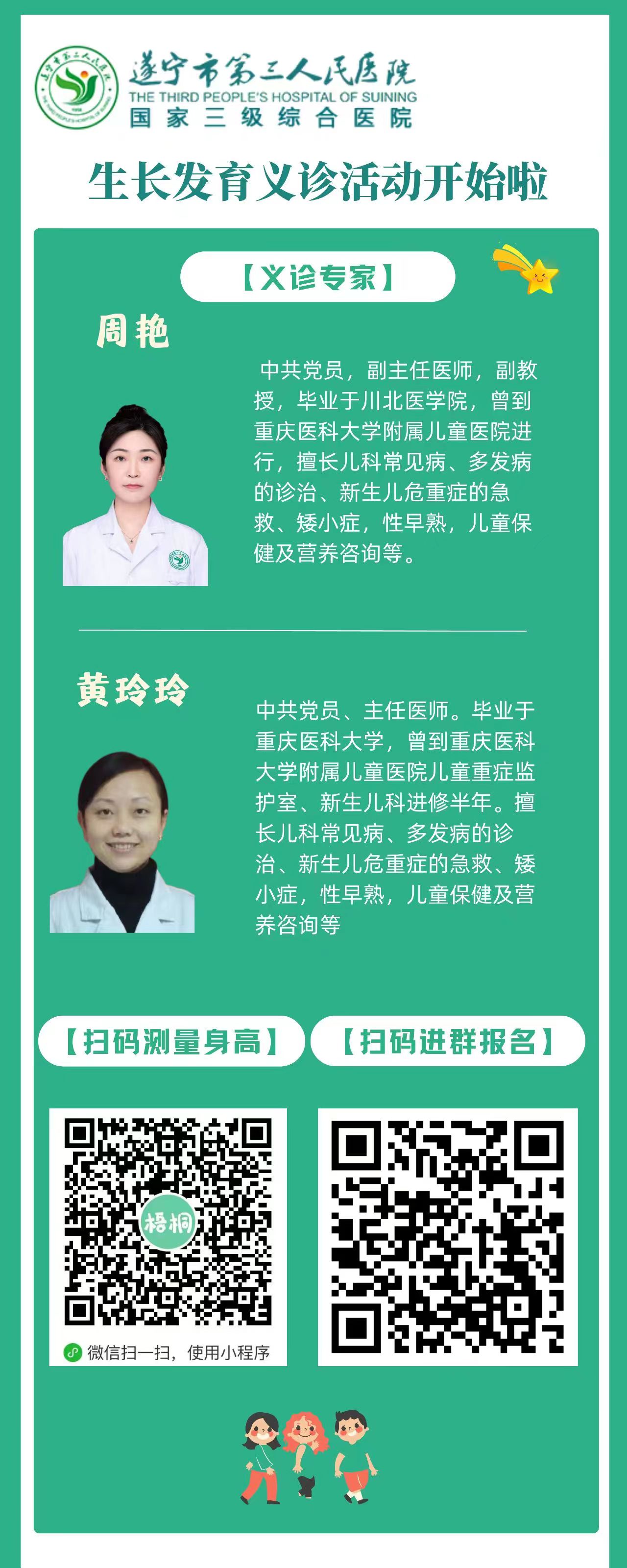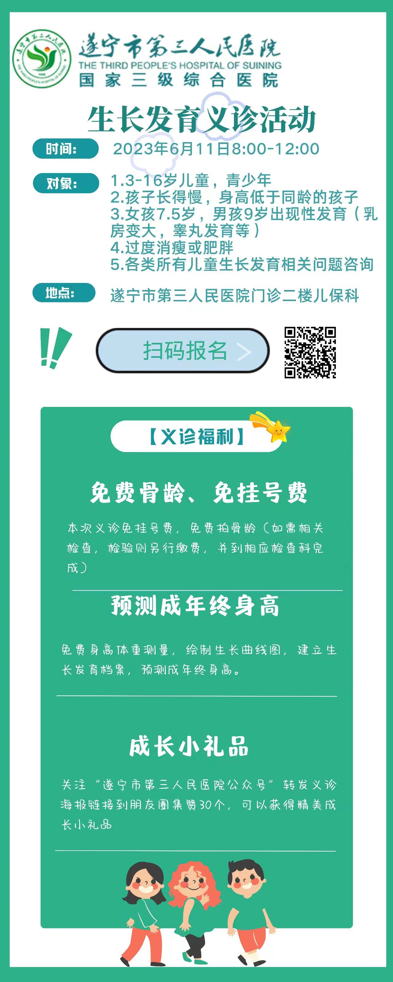 义诊对象:1. 3-14岁身高明显低于同龄人的矮小儿童或青少年;