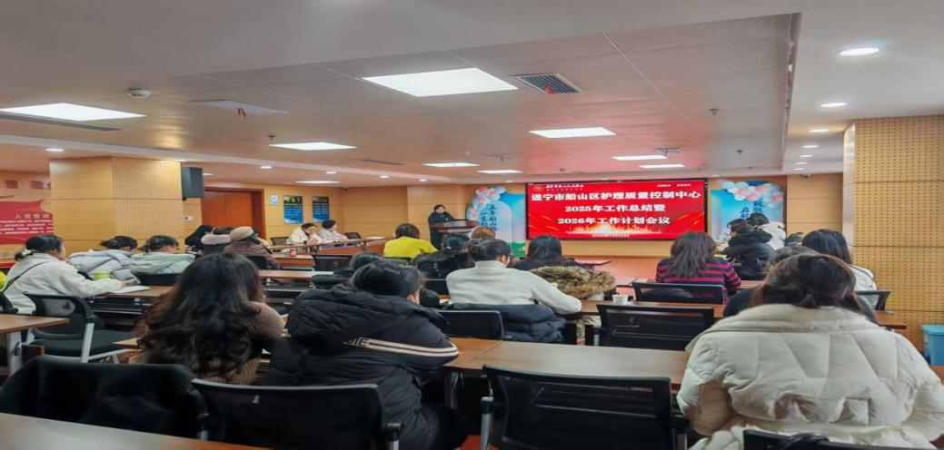 为全面总结2025年度区域护理质控成效,科学谋划2026年重点工作,持续提升护理质量与安全管理水平,1月23日下午,船山区护理质量控制中心在遂宁市第三人民医院召开2025年度工作总结暨2026年工作计划会议。中心全体成员、全区各医疗机构护理部主任及质控负责人参加会议。