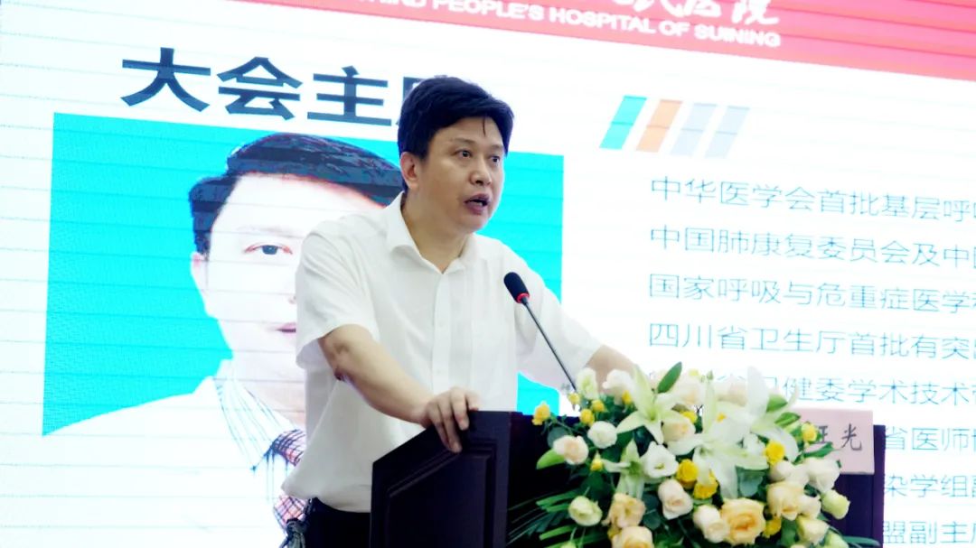 遂宁市卫健委主任潘昀,船山区卫健局党委书记、局长徐栋良,遂宁市医学会呼吸专业委员会主任委员、船山区卫健局党委委员、遂宁市第三人民医院党委书记何正光,遂宁市级及各区县、乡镇医疗机构相关负责人及业务骨干参加会议。遂宁市医学会呼吸专业委员会副主任委员、遂宁市第三人民医院党委委员、大内科主任、呼吸与危重症医学科主任徐峰主持会议。
