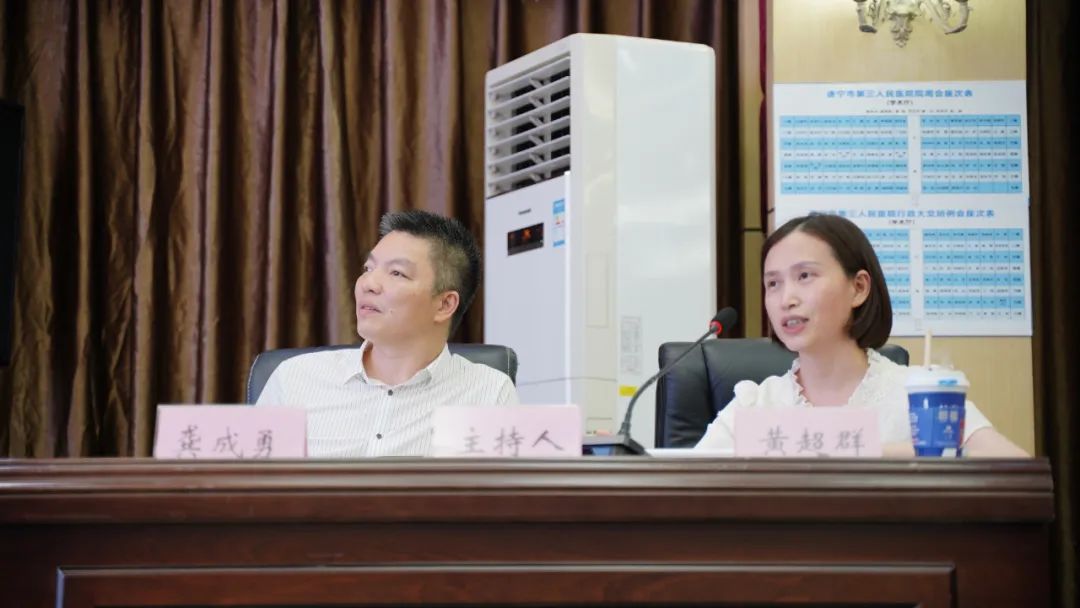 遂宁市第三人民医院党委书记何正光,蓬溪县人民医院党委委员、副院长岳沿江主持第一场学术报告。