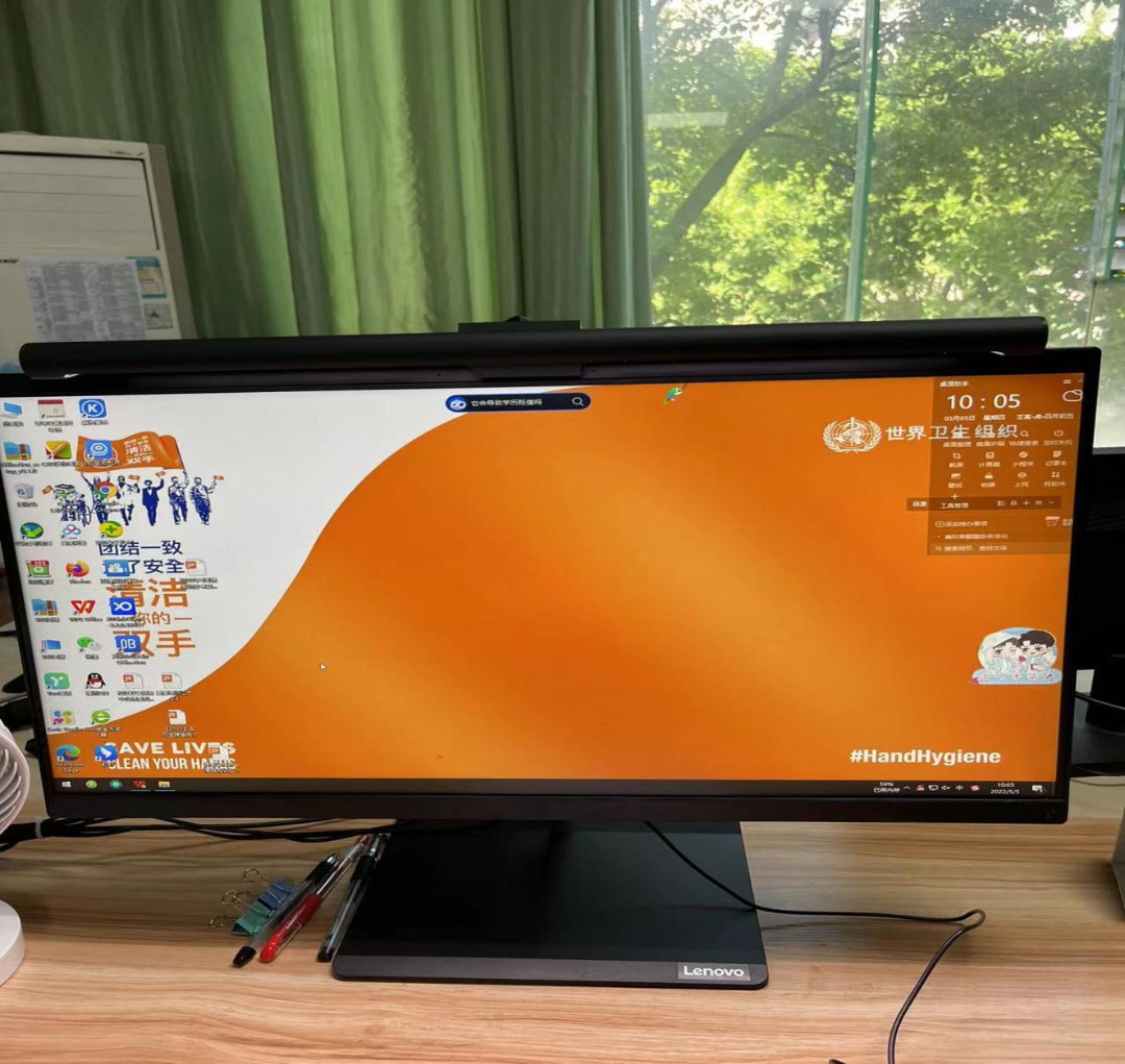 在院内各LED屏轮流播放手卫生宣传标语,同时将全院办公电脑桌面背景和屏保统一设置成手卫生主题图片。