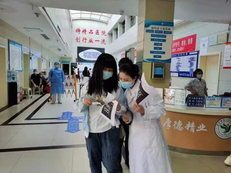 院感部门人员参与发放手卫生宣传资料,并对来院病人及家属进行手卫生知识宣教。