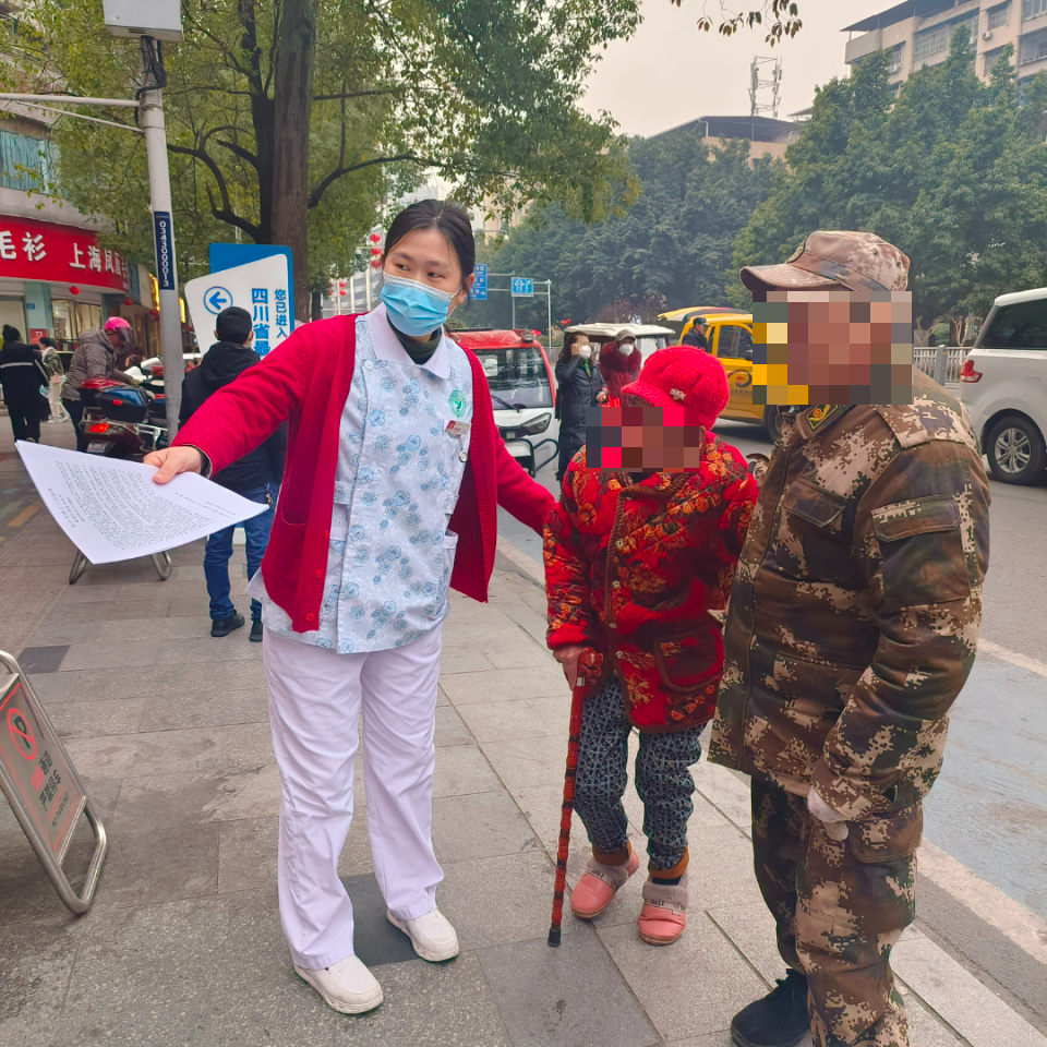 现场护理人员免费为广大群众量血压、测血糖,发放防癌抗癌知识宣传单,向群众讲解疾病防治知识,消除群众对癌症的错误认知。