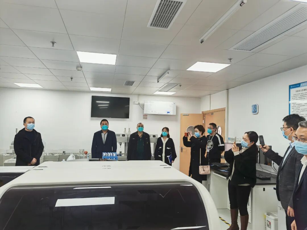 吴传斌一行实地参观了智能采血窗口、生化免疫流水线、微生物实验室、PCR实验室等。参观中,区域检验中心主任陈小冬介绍了我院区域医学检验中心是遂宁市首家拥有生物飞行质谱检测系统及血液标本气动传输系统的实验室,目前向市内所有医疗机构提供医学检验服务,实现检验结果同体系、可溯源。