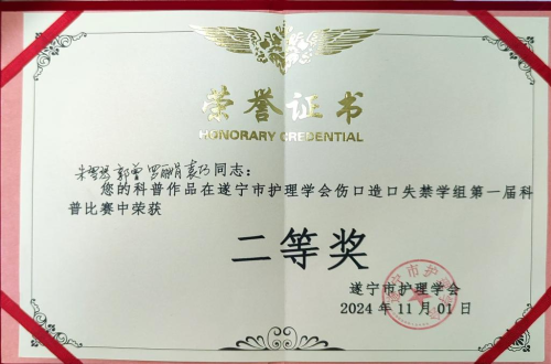 本次科普大赛,来自遂宁、南充、内江、广安、绵阳的17支参赛队伍同台竞技。我院护理团队的科普作品《关爱尿失禁,远离“社交癌”》经过激烈角逐和层层选拔,从多个参赛作品中脱颖而出,斩获科普案例大赛二等奖。