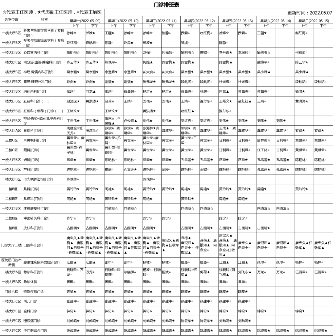 敬请收藏︱5月9日-5月15日“无假日门诊”排班表来了
