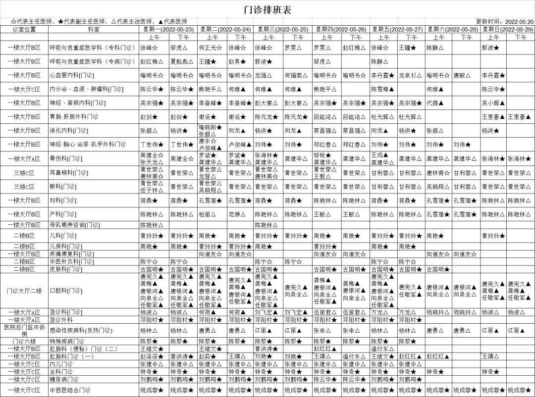 敬请收藏︱5月23日-5月29日“无假日门诊”排班表来了