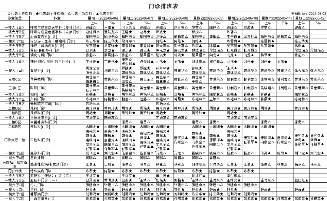 敬请收藏︱6月6日-6月12日“无假日门诊”排班表来了
