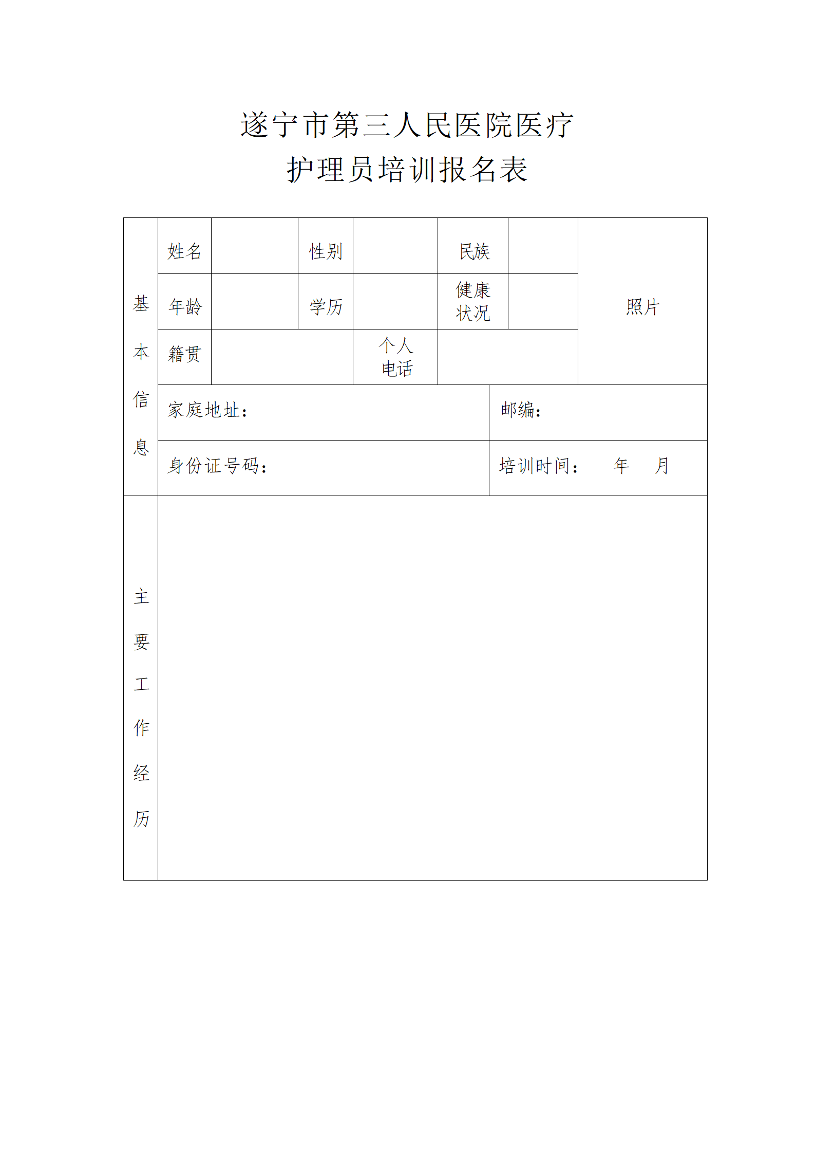 遂宁市第三人民医院医疗护理员培训报名表