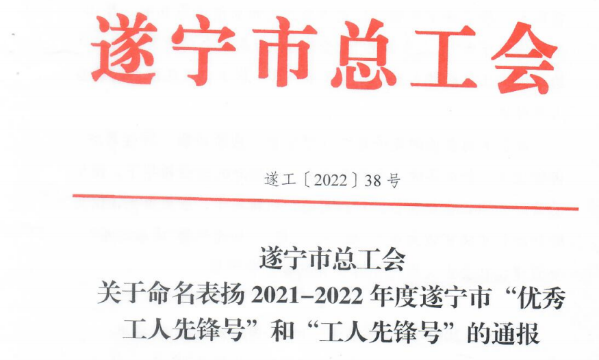为表扬先进,树立榜样,在全市范围内进一步弘扬时代精神、创业精神、奉献精神,市总工会决定,授予15个集体遂宁市“优秀工人先锋号”荣誉称号,我院消化中心消化内科榜上有名!