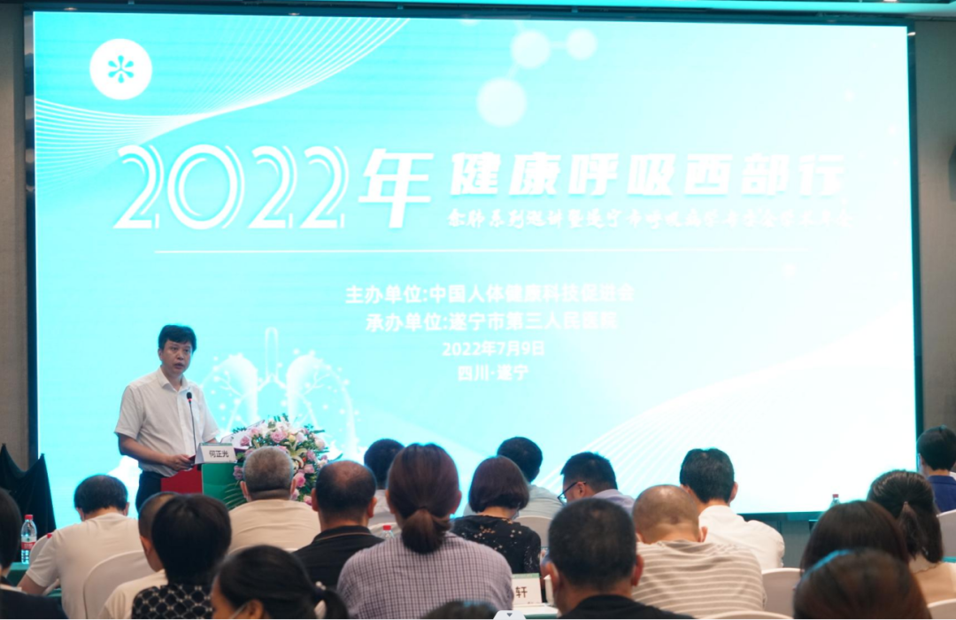 为积极响应国家卫健委“健康中国行”行动计划、认真落实四川省医师协会呼吸医师分会实施“基层医疗机构呼吸疾病规范化诊治体系与能力建设项目”的具体举措,7月9日,由中国人体健康科技促进会、遂宁市医学会呼吸专委会主办,遂宁市第三人民医院承办的“遂宁市呼吸专委会学术年会暨2022年健康呼吸西部行·愈肺巡讲系列学术活动”在遂宁市东旭锦江国际酒店召开。来自省内及全市各县(区)医疗机构相关专业人员参加。本次会议由遂宁市呼吸专委会主任委员、遂宁市第三人民医院党委书记何正光主持。