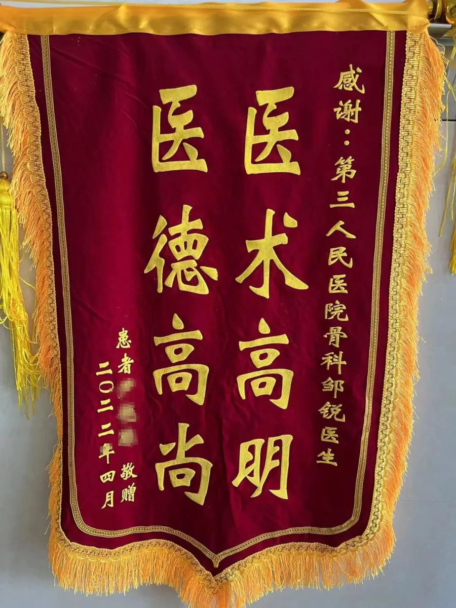 4月16日,我院骨伤科病房,一位即将出院的患者家属给骨伤科主任周建全、医生张海林、护士罗静怡手写一封感谢信,信中字里行间表达着对医护人员的感激之情。
