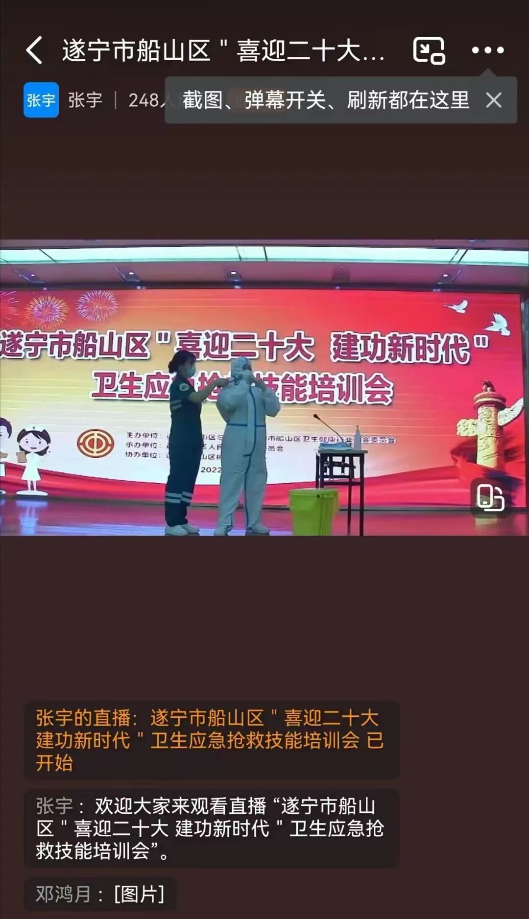 船山区总工会党组书记、常务副主席贺俊美,船山区卫生健康局党委委员、遂宁市第三人民医院党委书记何正光,船山区总工会党组成员、副主席李倩,船山区总工会经济技术和保障部部长唐春出席会议,会议由船山区卫健行业工会主席樊洪主持。