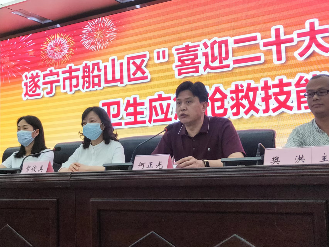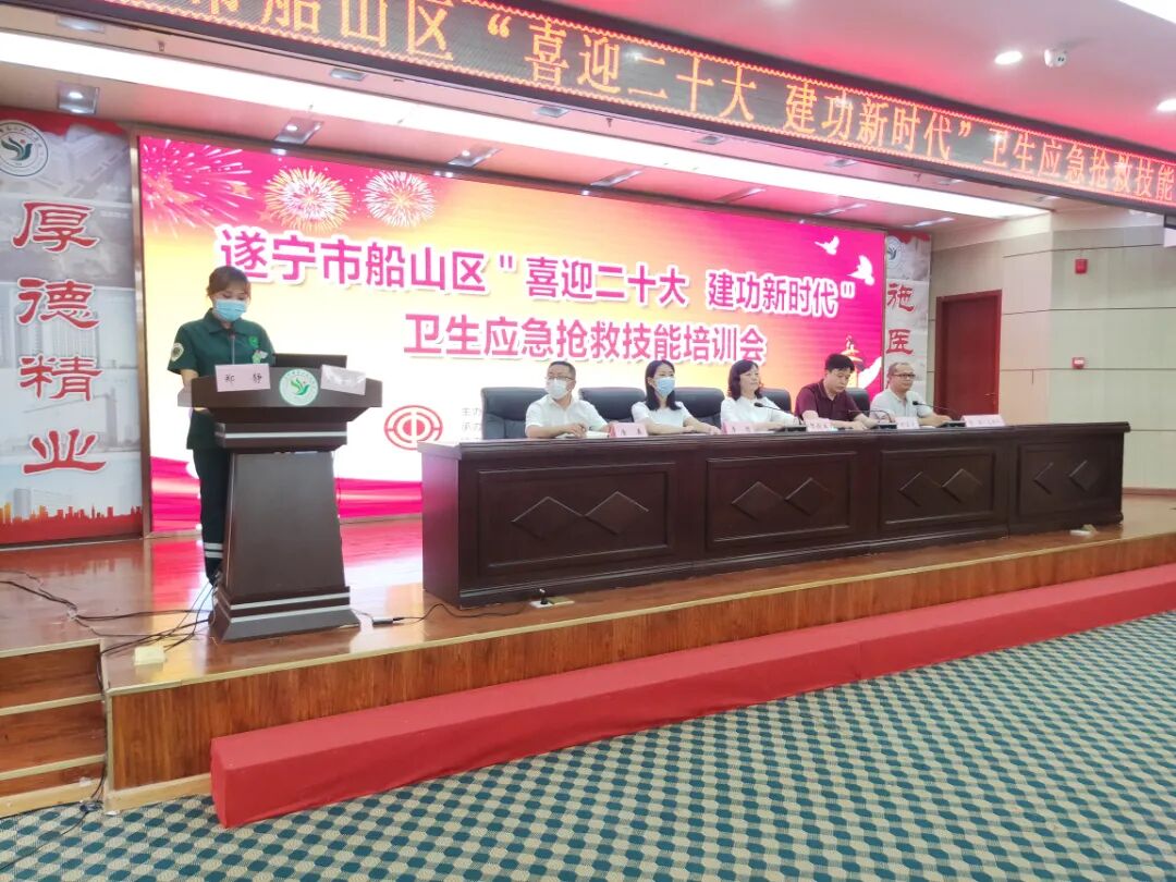 4月27日下午,船山区卫生应急抢救技能培训会在遂宁市第三人民医院学术厅顺利召开,此次培训活动由船山区总工会、船山区卫生健康行业工会委员会主办,遂宁市第三人民医院工会委员会承办,船山区护理质控中心协办。全区卫健系统各单位代表参加了培训,培训会同步进行钉钉直播。