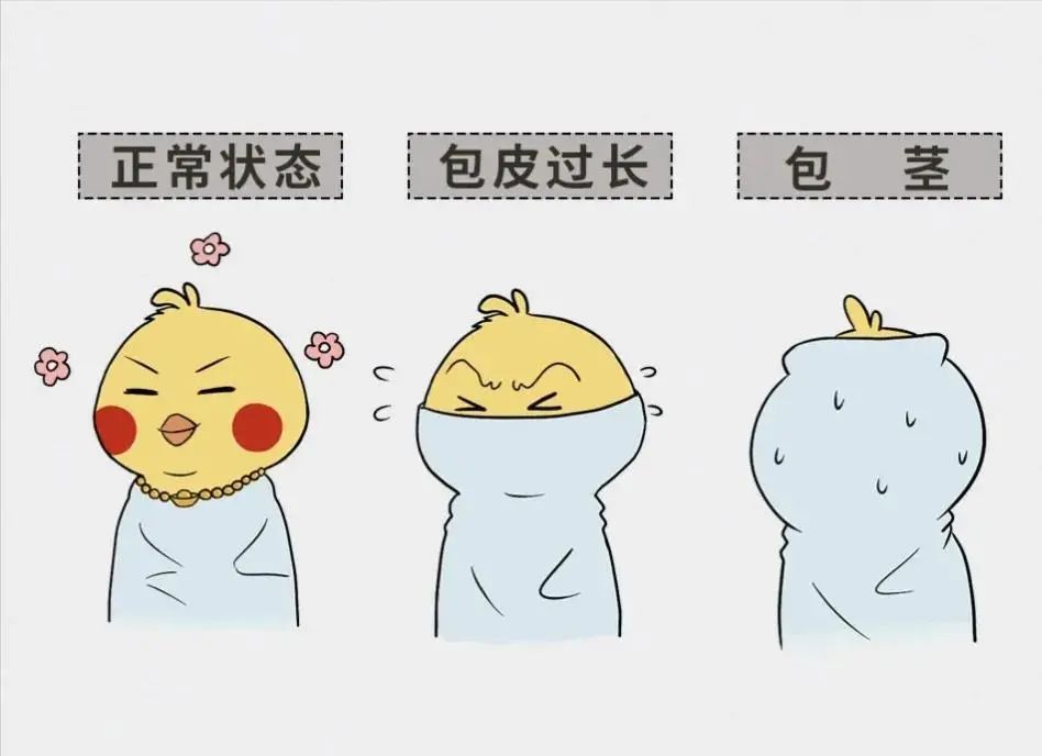包茎:包皮长且包皮口过小,阴茎勃起或用手将包皮往下翻时,龟头和尿道口无法露出。