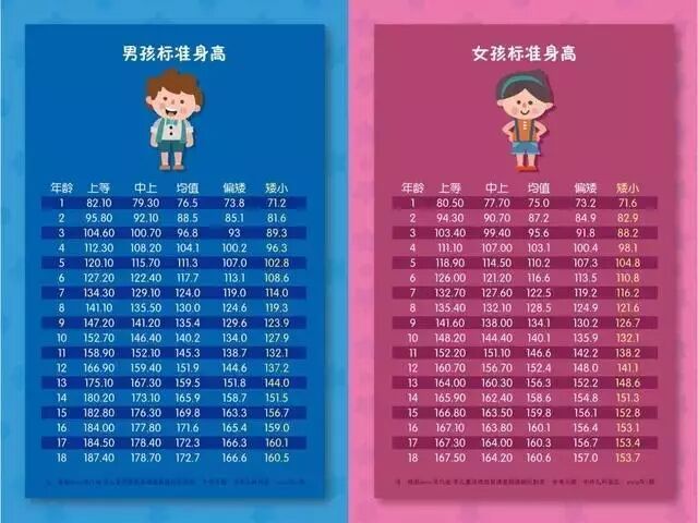 在孩子2岁左右,与成年身高的关系就更大些,2~10岁间两者相关系数为0.8左右,所以适合用这个阶段的身高来预测成年后的身高。女孩子比男孩子发育快一些,可以用18个月的身高来计算。