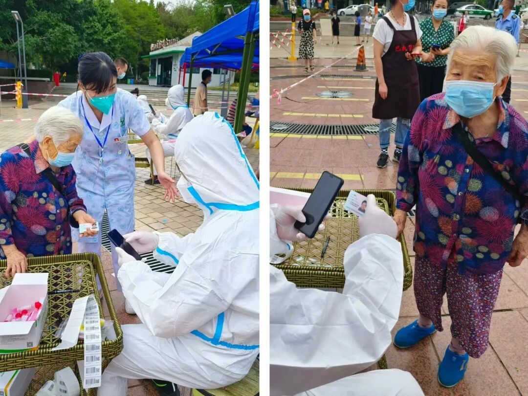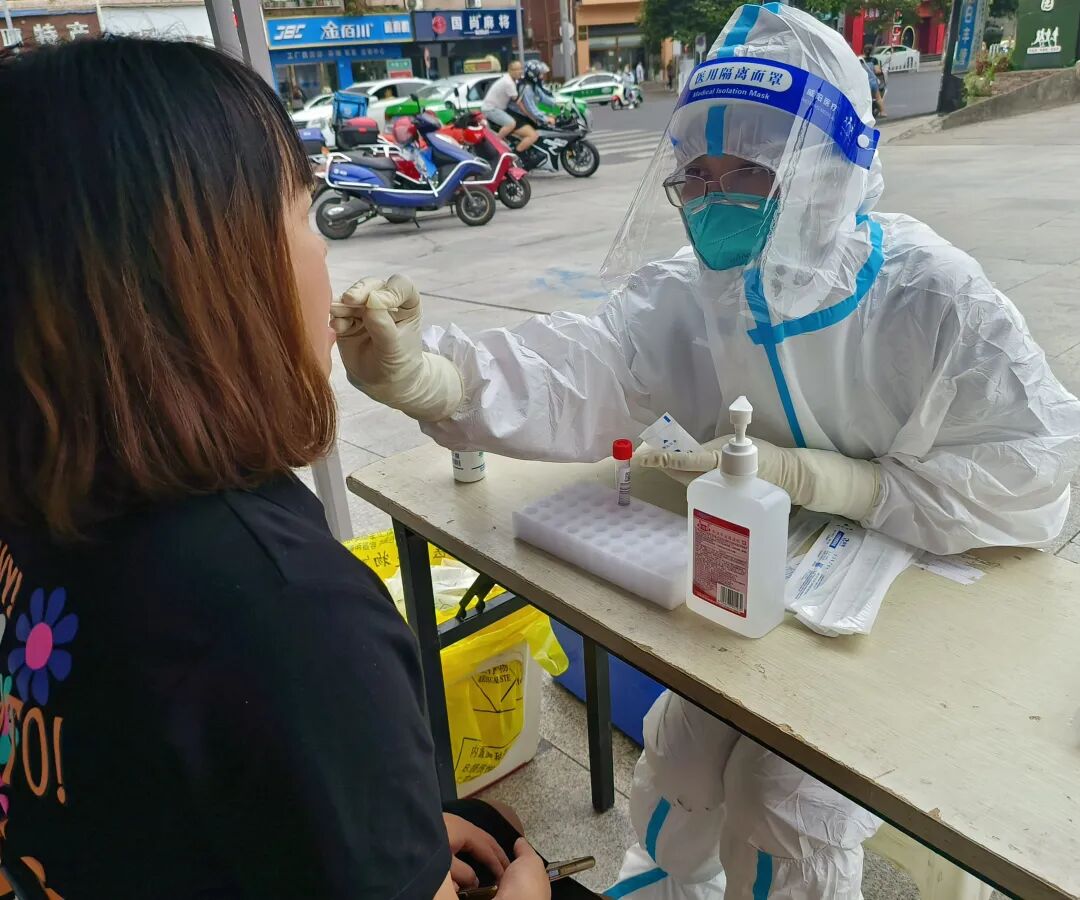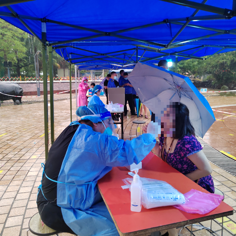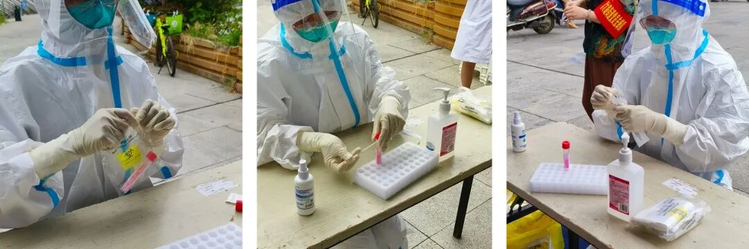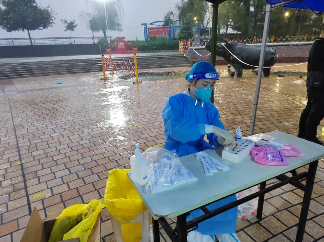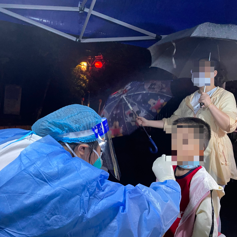 18:00同事提醒她可以交班休息了,但看到很多排队等待进行核酸检测的市民,她立刻拨打电话向相关领导报备,申请继续采样工作。“现在正在下雨,很多人还打着伞在排队,我去帮忙再开一组采样通道会快一些!”挂完电话,她继续忘我的投入工作。