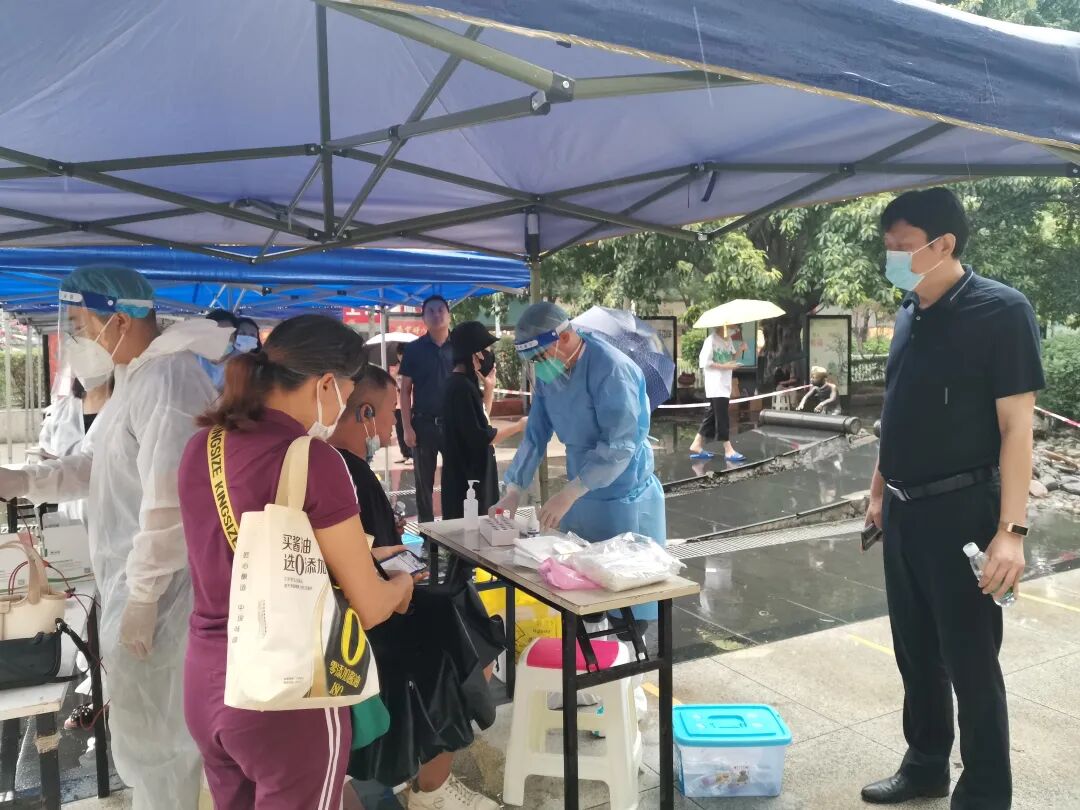 随着天气突然“变脸”,狂风暴雨为核酸检测工作增加了不少难度系数,为了保障核酸检测工作顺利开展,党委书记何正光率院领导班子成员冒雨到一线慰问关心医护人员,现场解决问题。