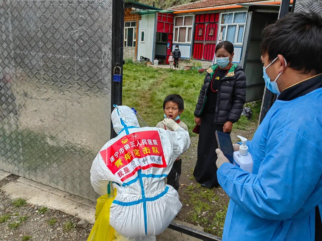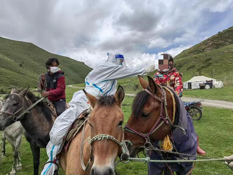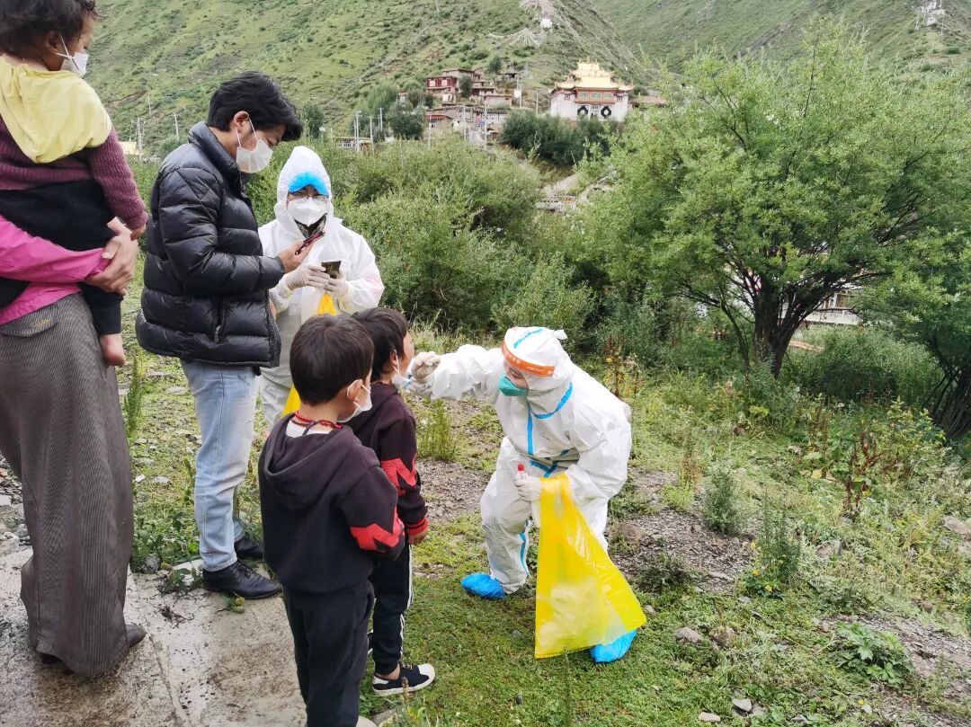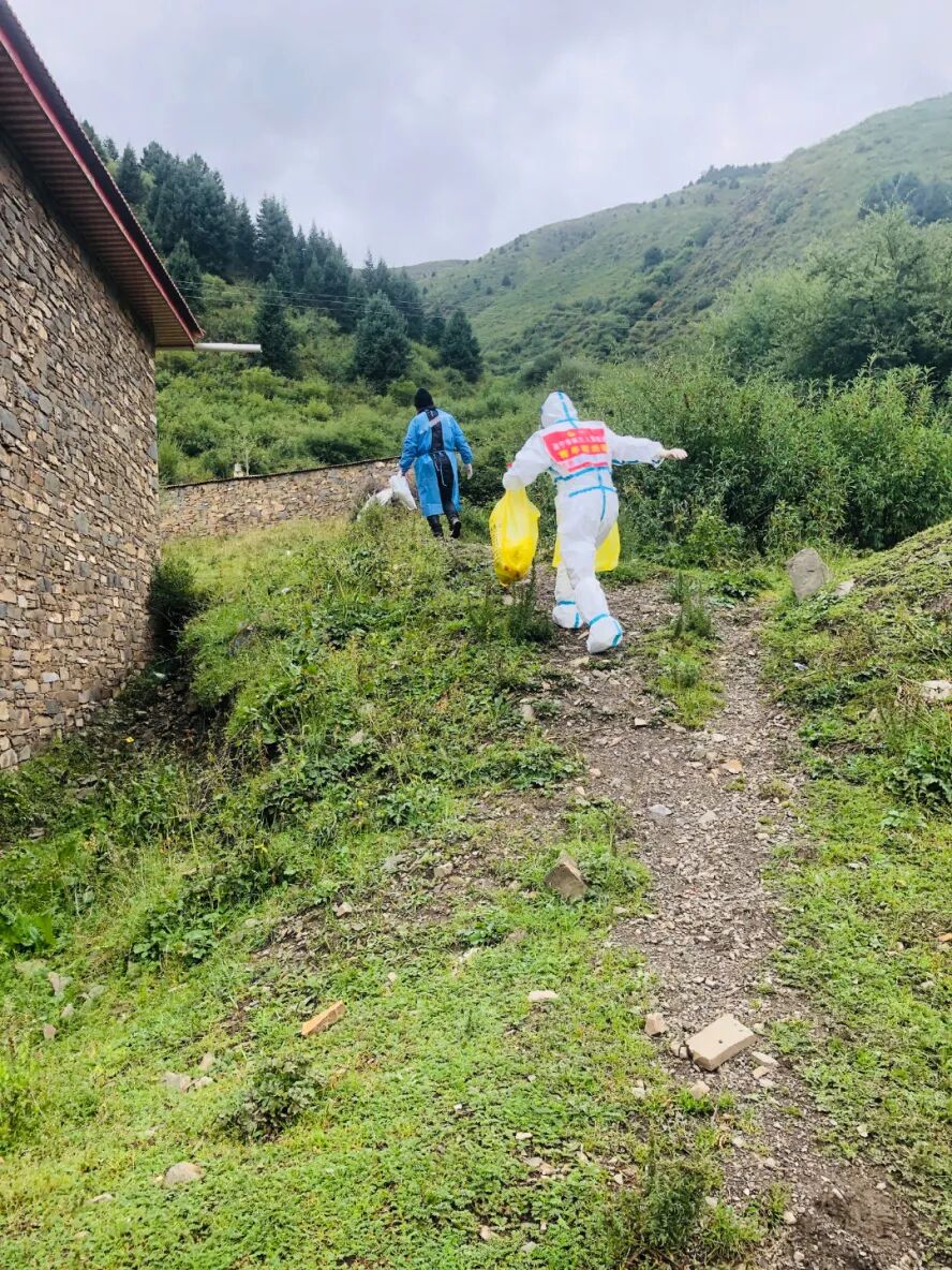 在海拔4000多米的高原上,徒步入户为藏族同胞们采集核酸,每一户还间隔非常远,上山下坡,包裹在防护服里面的我们,每次走到指定地点时几乎已经喘憋的不能说话,得缓好一会才能开始采集工作。