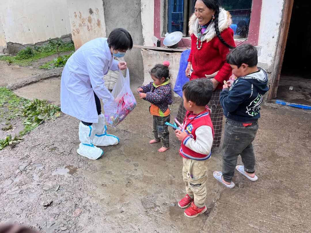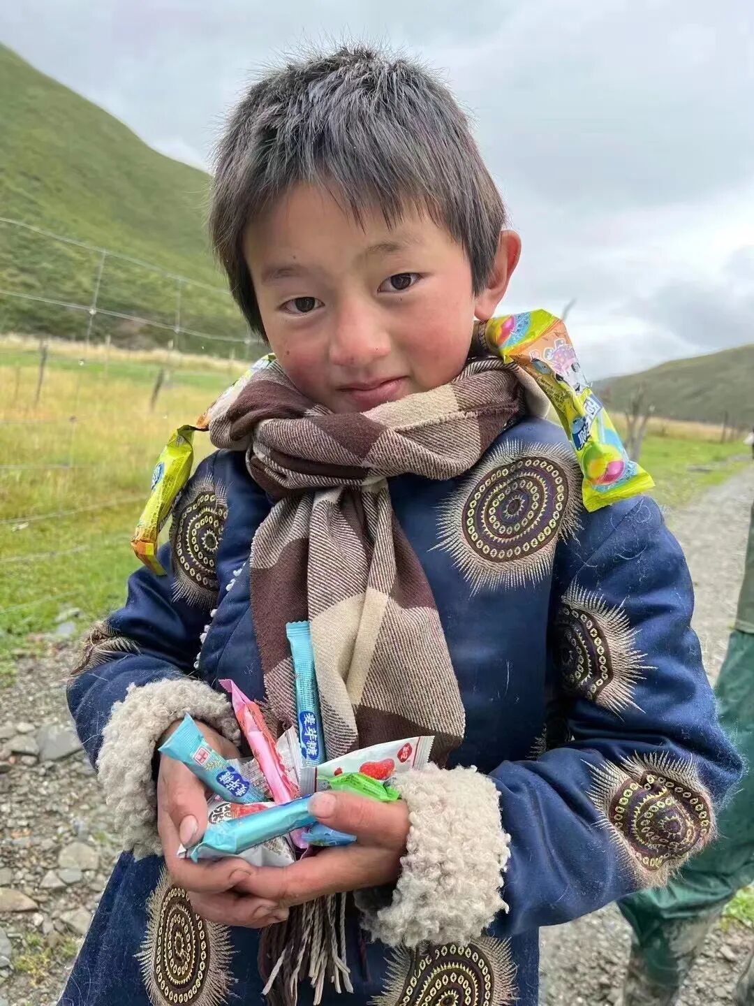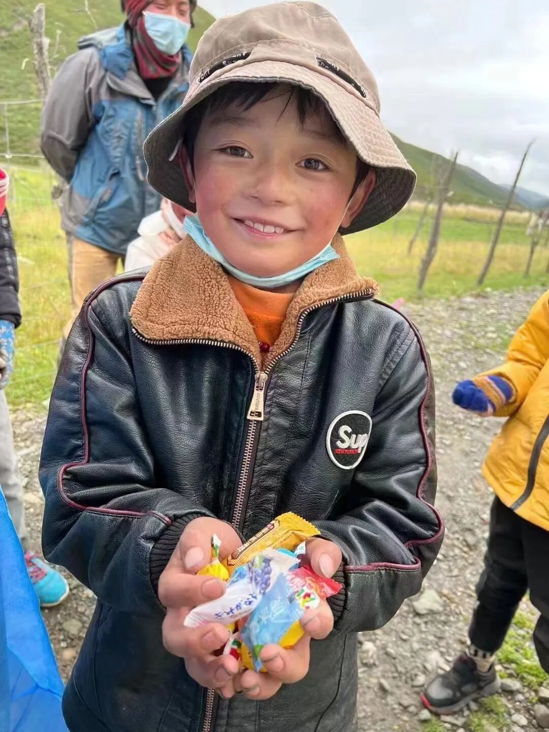 中秋前几天,我们6人想给村里的孩子们送点小礼物,由于条件有限,我们只采购到6大袋糖果带上山送给他们,有个孩子拿到糖果特别兴奋,还跟翻译人员学着普通话对我们说"都是我爱吃的,谢谢姐姐!"