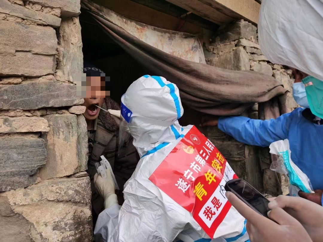 10:00我们到达阿斯玛村后,立即穿上厚重的防护服开始核酸采集工作,2人在点位上,4人入户采集。