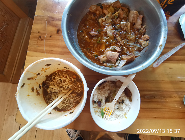 15:00左右,抽空吃了一顿午餐,然后接着奔走采样,一轮采样下来我们基本上都是眼冒金星、头晕目眩的状态,还得马不停蹄,一路狂奔把标本送到南木达镇,等回到酒店已是深夜。