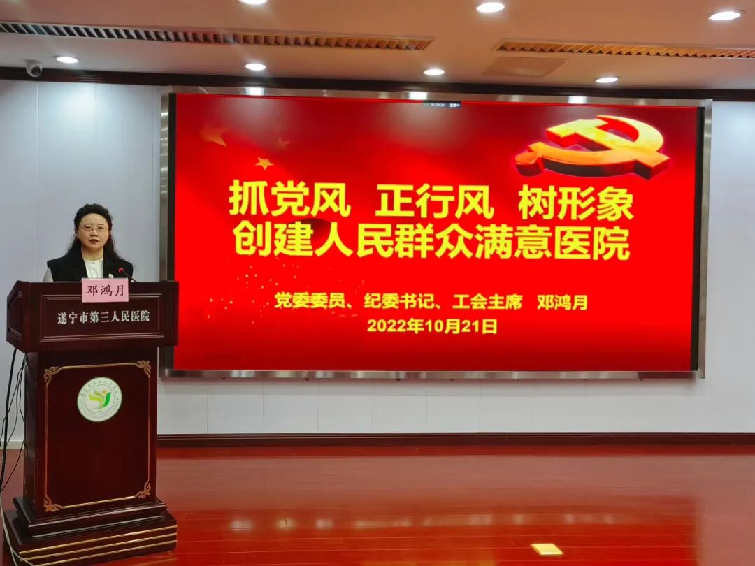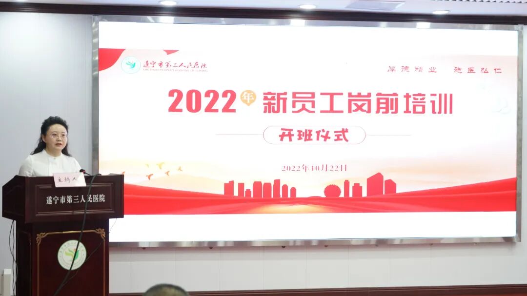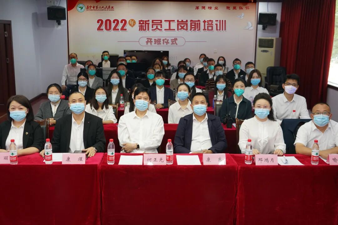 今日,我院在多功能厅举行2022年新员工岗前培训开班仪式,院级领导、相关职能部门负责人及新员工参加;纪委书记、工会主席邓鸿月主持。会议采取线下+线上钉钉同步直播的方式召开。