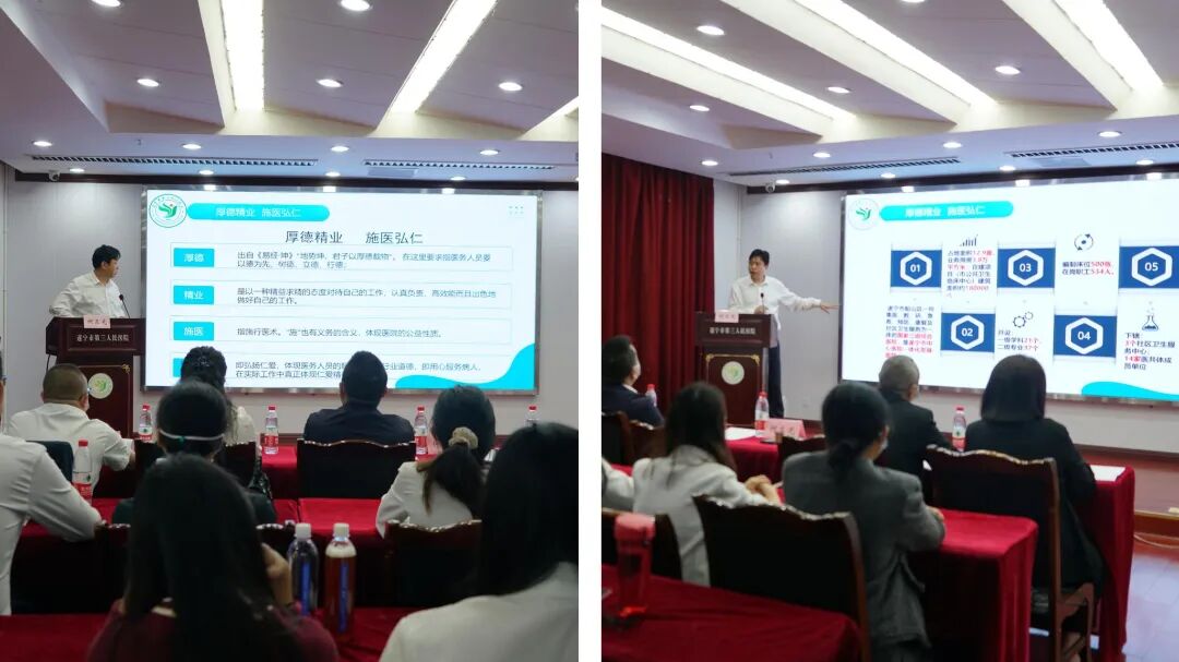 岗前培训在开班仪式结束后拉开帷幕,此次培训从党建引领、文化建设、宣传工作、廉政建设、人事制度、医疗制度和业务培训、院感知识培训、药物管理、医保知识和消防安全等方面对新员工进行了系统授课。