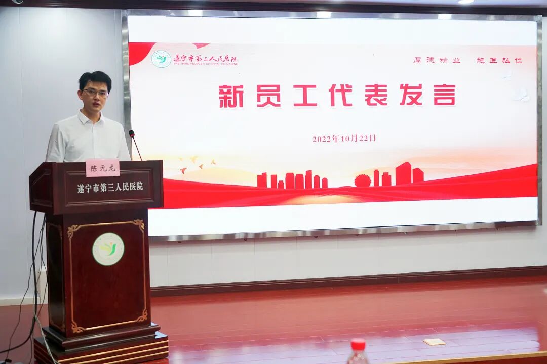 引进人才消化中心副主任陈元龙作为新员工代表进行发言,他感谢医院为大家提供实现人生理想的舞台,将时刻铭记“健康所系,性命相托”的医者初心,牢记“保障人民身体健康,生命安全”的医者使命,并表示在今后的工作中,一定会立足岗位,以踏实严谨的态度和饱满的热情投入到工作中,把自己的前途和医院的命运紧密相连,积极为医院的建设和发展献策和献力。