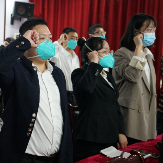 新进职员消化内科研究生赵志娟带领参会人员重温医学生誓词:“健康所系,性命相托,我志愿献身医学,热爱祖国,忠于人民,恪守医德.....”那一句句铿锵有力的声音是全体医务人员的心声,那一句句饱含深情的话语是白衣战士们最真情的表达。