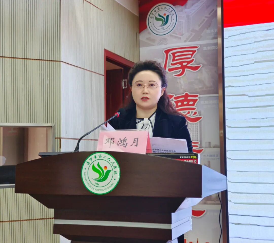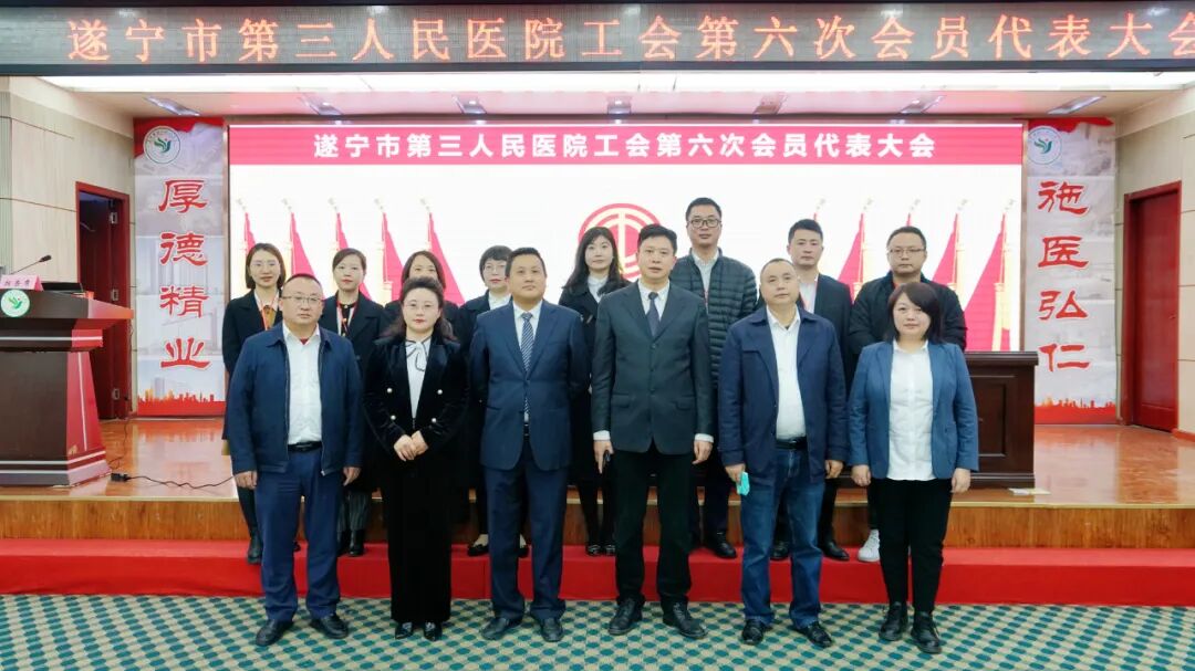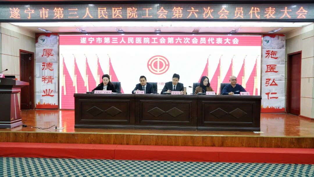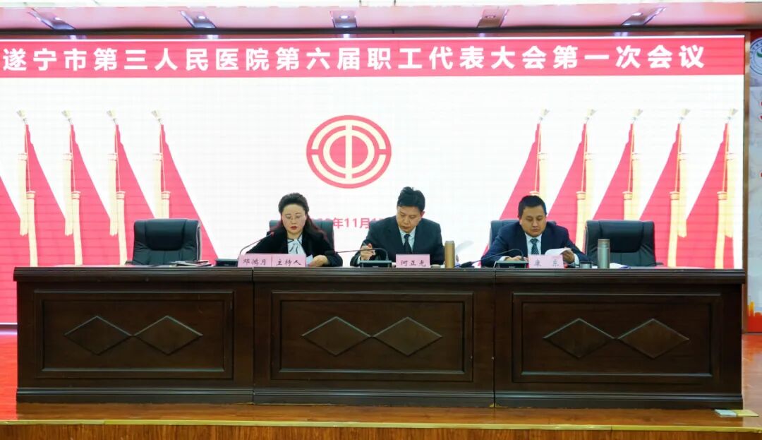 11月17日下午,我院工会第六次会员代表大会暨第六届职工代表大会第一次会议在学术厅隆重举行。船山区总工会党组成员、副主席李倩,船山区卫健局党委委员、市第三人民医院党委书记何正光,船山区卫健行业工会主席樊洪,遂宁市第三人民医院党委副书记、院长康东出席会议。医院其余院级领导及全体工会会员代表参加会议。会议由纪委书记、工会主席邓鸿月主持。