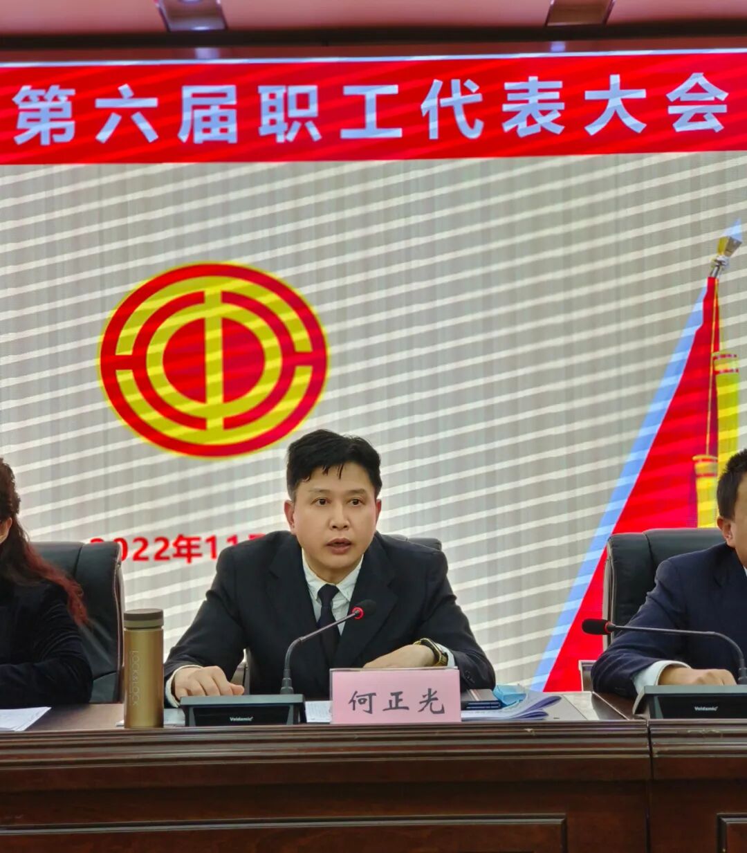 何正光代表院党委对上届工会为医院和职工做出的贡献表示感谢,对新当选的第六届工会领导班子表示祝贺,并就做好今后医院工会工作提出三点意见:一是希望新一届工会委员要继续牢记工会组织的宗旨,牢记广大职工对我们的要求,在上级工会的领导下,当好职工的娘家人、贴心人。二是希望医院全体职工代表紧紧团结在医院党委周围,凝心聚力、共谋发展。三是希望全体代表胸怀大局,同心同德、同舟共济,就能使医院这艘满载希望的生命之舟行得稳,走得远。希望在新一届工会委员会共同努力下,团结和带领全院职工务实创新、开拓进取、忠诚履职、踔厉奋发,助力医院发展再创佳绩!