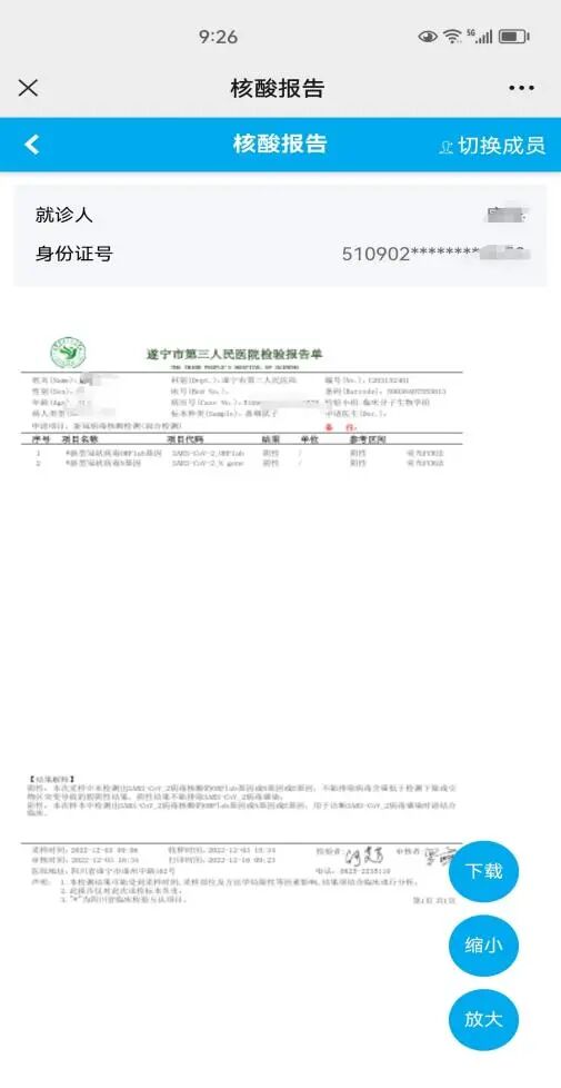 打开四川天府健康通小程序,点击“核酸检测结果查询”,可以查询到省内核酸结果。