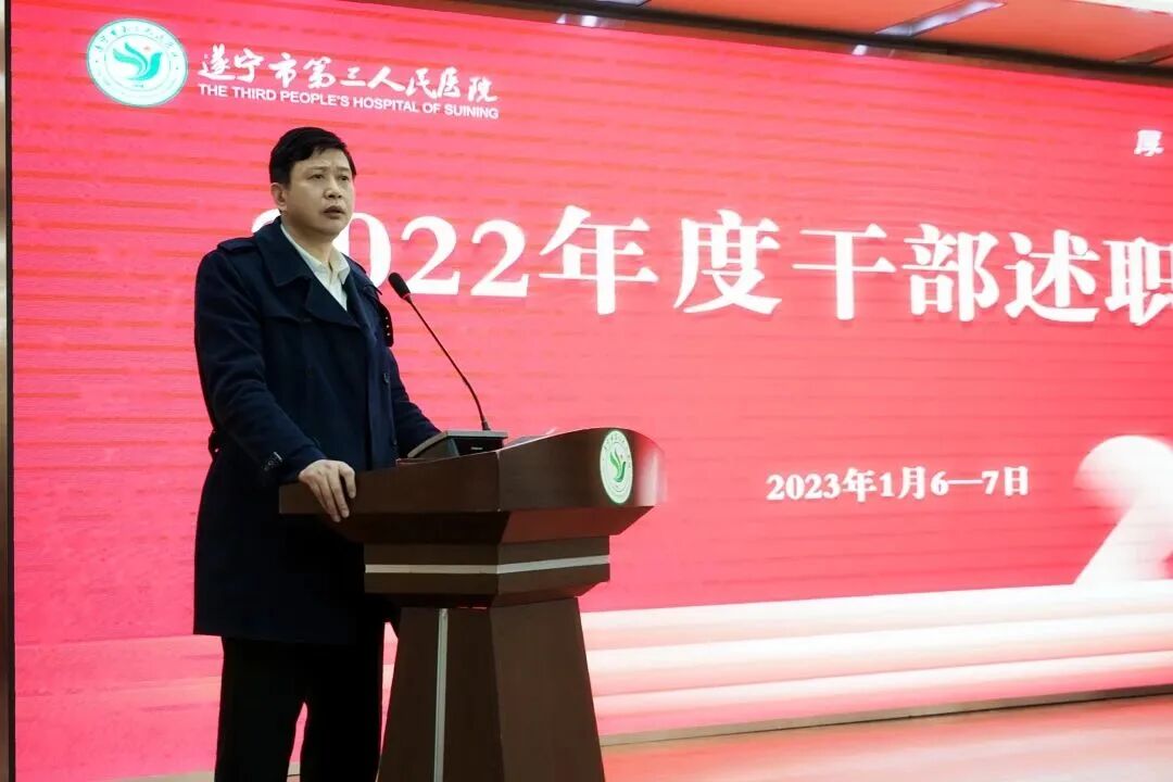 党委书记何正光对述职大会进行了现场点评,对各科室、部门在过去一年工作中取得的成绩给予了充分肯定,对存在的问题进行了全面分析并提出了具体要求。他强调2023年要全面贯彻落实党的二十大精神,弘扬伟大建党精神,忠诚拥护“两个确立”、坚决做到“两个维护”,继续发扬市三医人勇于创新、严于律己、敢为善为的精神,加强科研教学能力建设、推进医院品牌建设、提升内涵,保障“服务”品质。