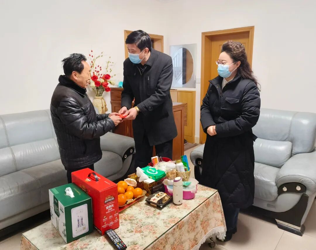 寒冬送暖,腊月传情。在2023年新春佳节来临之际,我院党委书记何正光,党委副书记、院长康东率院级领导分组开展春节送温暖活动,走访慰问了我院部分退休干部、困难职工,为他们送去慰问金及慰问品,并致以新春佳节的问候和美好祝福。
