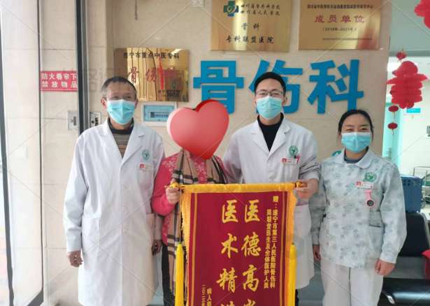 “刚入院时,我自己根本没办法翻身,小便、吃饭全部需要人帮忙,真的很难受。我以为要在床上躺一两个月呢,但没有想到仅仅10天左右就康复了,非常感谢骨伤科的医护人员。”郑婆婆说,现在治疗虽然告一段落了,但在住院期间,医护人员对工作的一丝不苟,对患者的和蔼可亲自己都看在眼里,感动在心里,于是送来锦旗和兰花,对骨伤科医护人员表达心中无限的感激之情。