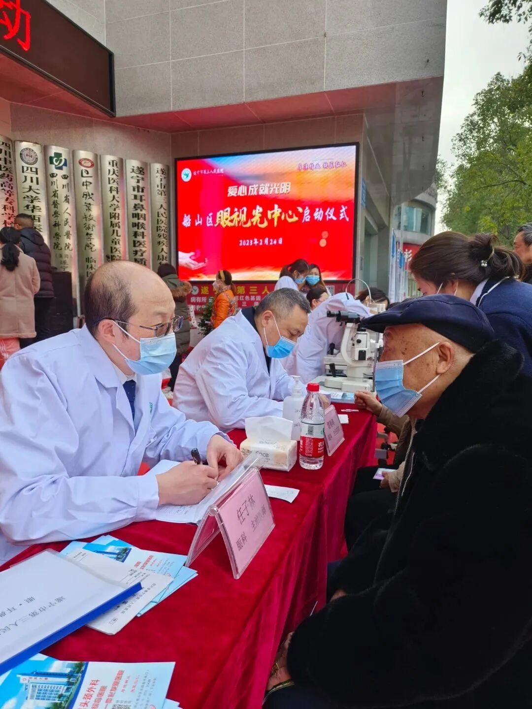启动仪式后进行了义诊活动。雷春涛教授和船山区眼视光中心专家现场坐诊,为前来咨询的群众进行视力、眼部疾病检查,耐心细致地解答群众提出的眼部健康问题,同时免费为现场群众测血压、血糖,发放眼科科普资料,宣传眼科疾病防治知识。
